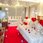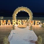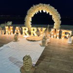 תוכלו למצוא אצלנו עיצוב לב ענק שזור פרחים לבנים שבמרכזו נשאלת השאלה הכי חשובה ?"marry me" או עיצוב מאותיות פרחים מושקע